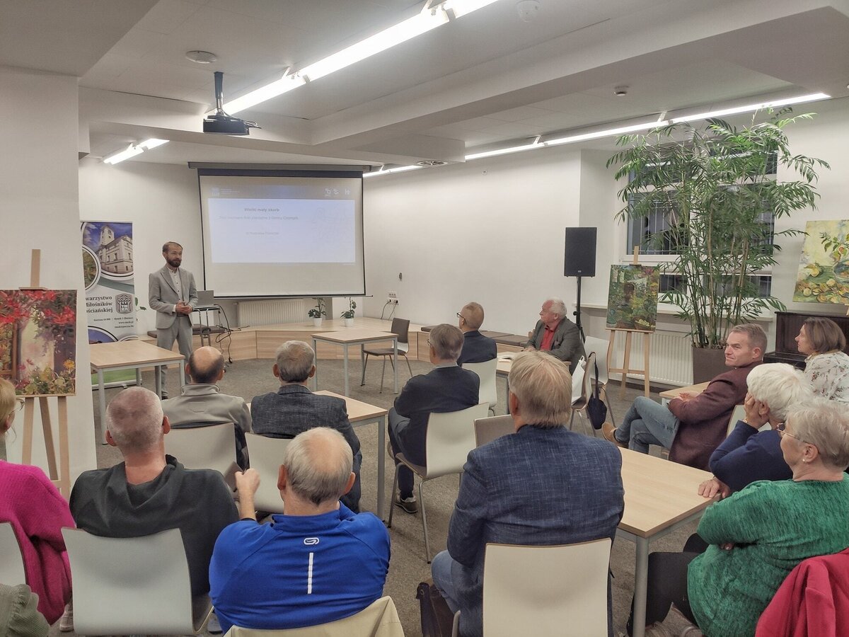 Podczas kolejnego wykładu, który odbył się 30 września 2025 roku, dr Radosław Franczak mówił o „wielkim małym skarbie”, czyli o trzech nieznanych tłokach pieczętnych znalezionych na terenie gminy Czempiń.